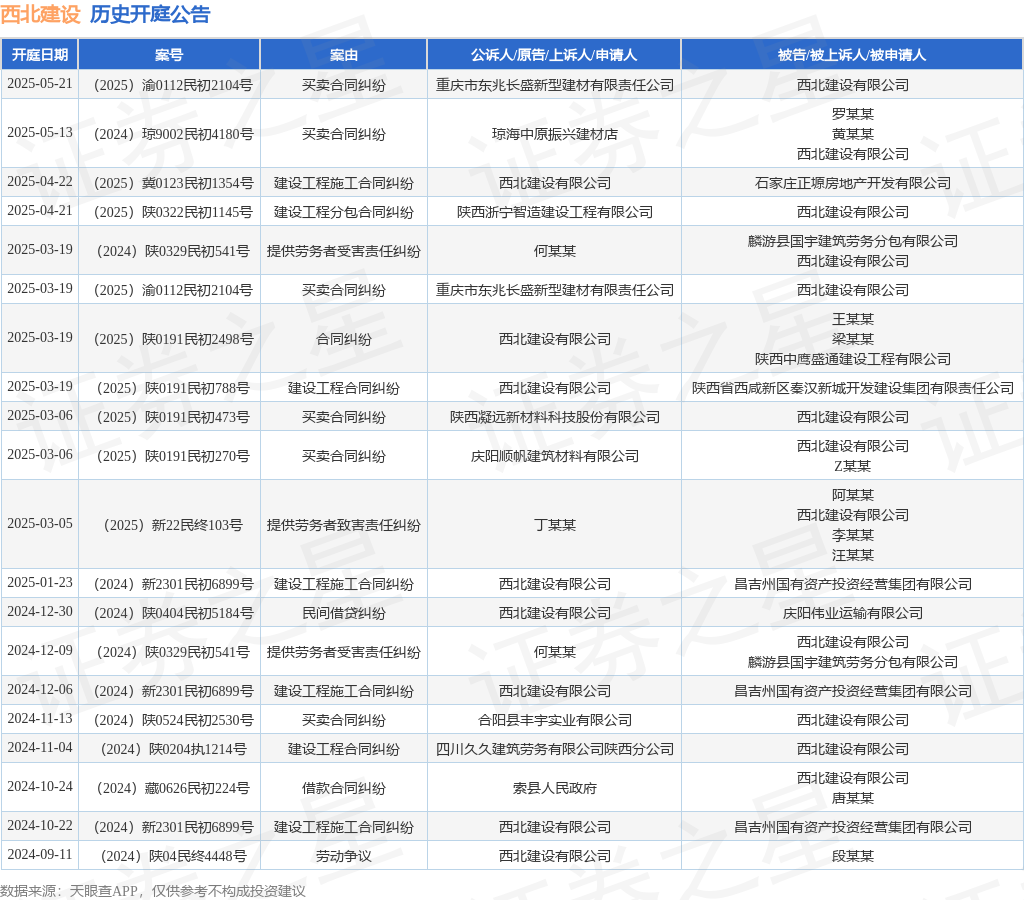 本站消息,根据天眼查APP显示,近日公布了一则西北建设有限公司作为被告/被上诉人的开庭公告,详细内容如下: